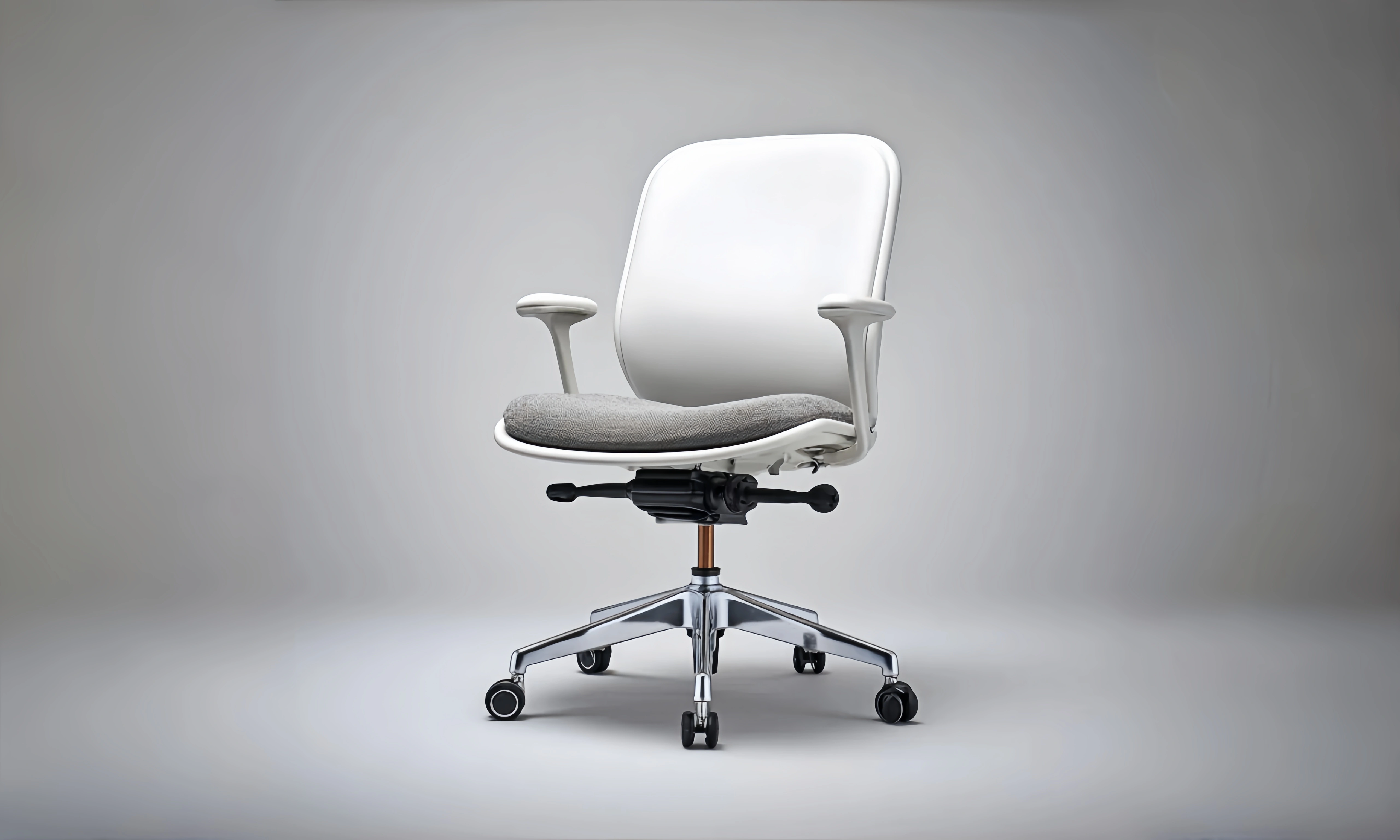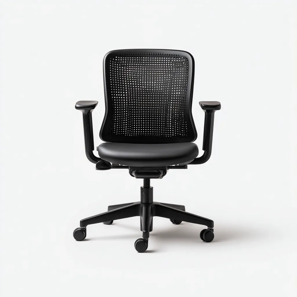 Cette chaise de bureau ergonomique combine un dossier en maille respirante et une assise rembourrée en tissu gris clair, offrant un confort optimal pour une utilisation quotidienne. Son design moderne et épuré s'intègre facilement dans un espace professionnel ou domestique.